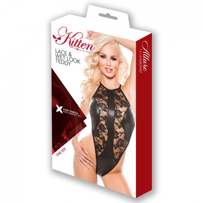 The Allure Kitten lace and wet look teddy is packed with gorgeous detail that combines an edgy look with an elegant finish. This piece of lingerie has a fitted design that makes your figure the star of the show.
