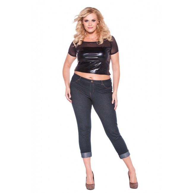 Whether you?re in the bedroom or in the club, this off-the-shoulder wet look top with mesh sleeves is sure to turn heads. Wet look back. G-string included.