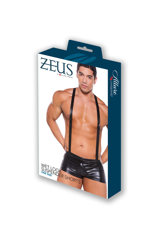 HomeShopFetish Zeus Wet Look Suspender Shorts Black OS