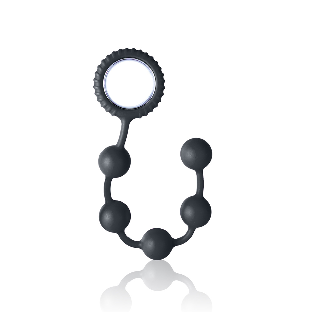 HomeShopSex ToysAnal ToysAnal Beads 9In. Silicone Anal Beads with Silver Plating Ring Black