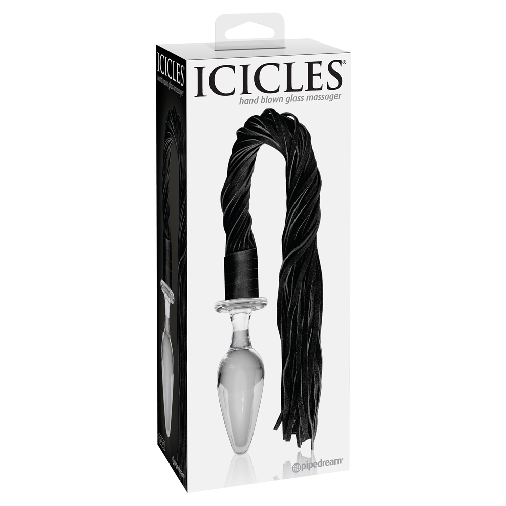 The Icicles No.49 clear butt plug indulges your flogging fetish in style. This butt plug features genuine bull leather tresses for incredible visual impact and exciting partner play.