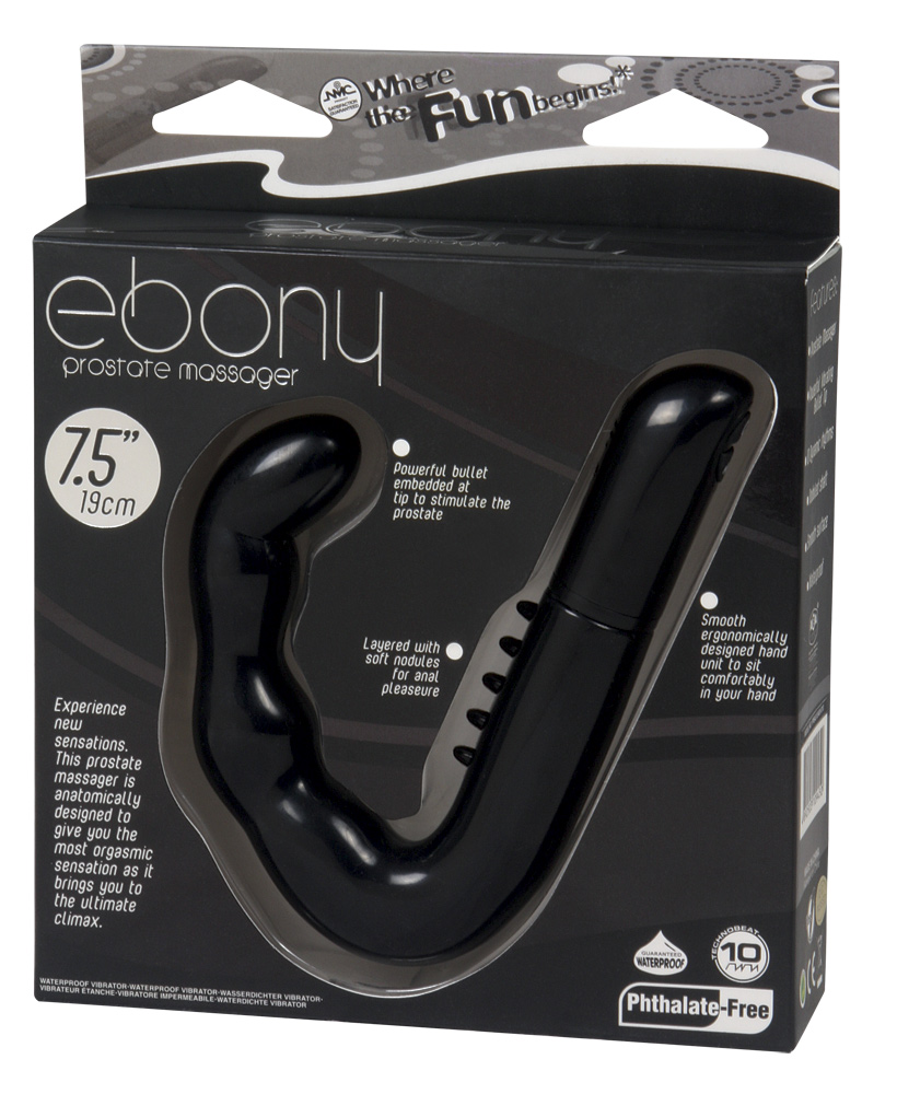 Ebony 7.5″ Prostate Massager. Vibrating tip massages the prostate for an orgasmic sensation. The soft nodules stimulate the anus for an enhanced experience. A powerful vibrating bullet pulsates to 10 dynamic rhythms.