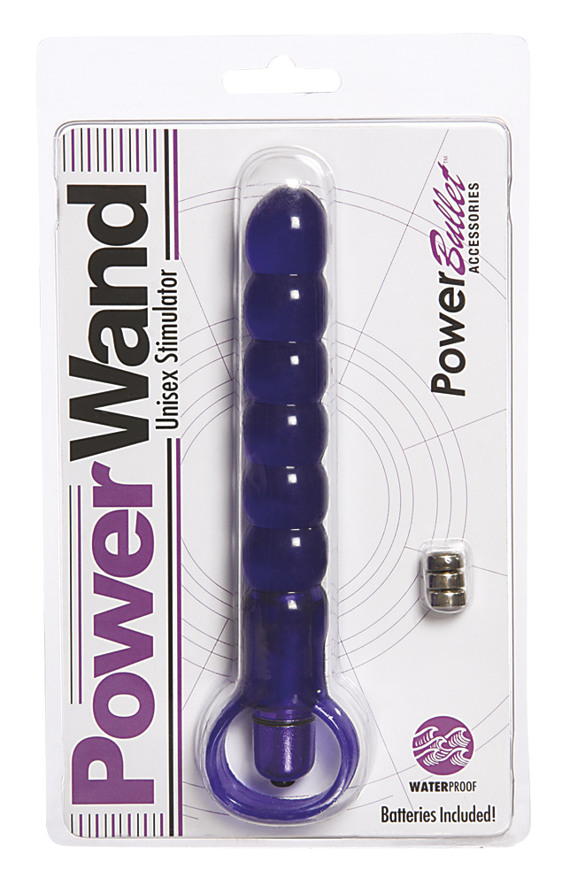 Power Wand Unisex Stimulator ~ Purple (Batts Inc.).This wireless 6 inch vibrating Power Wand has a beaded design and is made for use by men or women. The amazing thing is that all the powerful vibration, from base to tip, comes from one little multi-speed bullet. You can even use the bullet on its own (which we recommend!!). This toy is available in Black or Purple