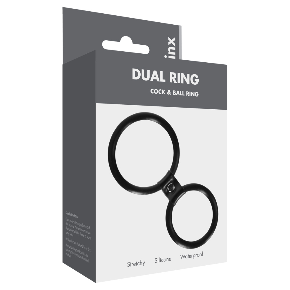 Dual Ring Cock Ring. This one-piece shaft and balls design cock ring set sits comfortably around those sensitive areas and helps keep the party rocking, harder and longer.