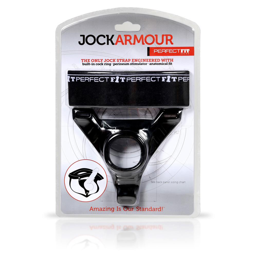 What makes the Jock Armour unique is the integrated cock ring. It is made from PF Blend, a combination of silicone and TPR. This toy is easily cleaned and also comes in Small, Medium and Large. It has superior stretch and durability and is designed for comfortable extended pleasure. This toy can be worn under a tight pair of jeans to really show off your shape. It can be used safely with a water-based lubricant for enhanced pleasure.