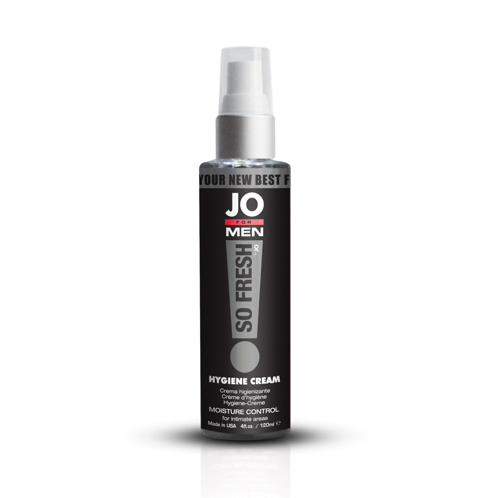 JO for Men Hygiene Cream 120ml. This System Jo So Fresh! Hygiene Cream for men is an essential when it comes to his regular grooming routine. This cream dries into a comfortable body powder after application and is free from talc, parabens or fragrances the ideal solution for sensitive skins. This hygiene cream can be applied on hands, feet, knees and elbows. The pharmaceutical grade ingredients ensure that it’s also ideal for more sensitive areas like the groin. This cream goes on fast and dries quickly perfect for men on the go. A dollop of this cream gives him long lasting moisture control and prevents chaffing.