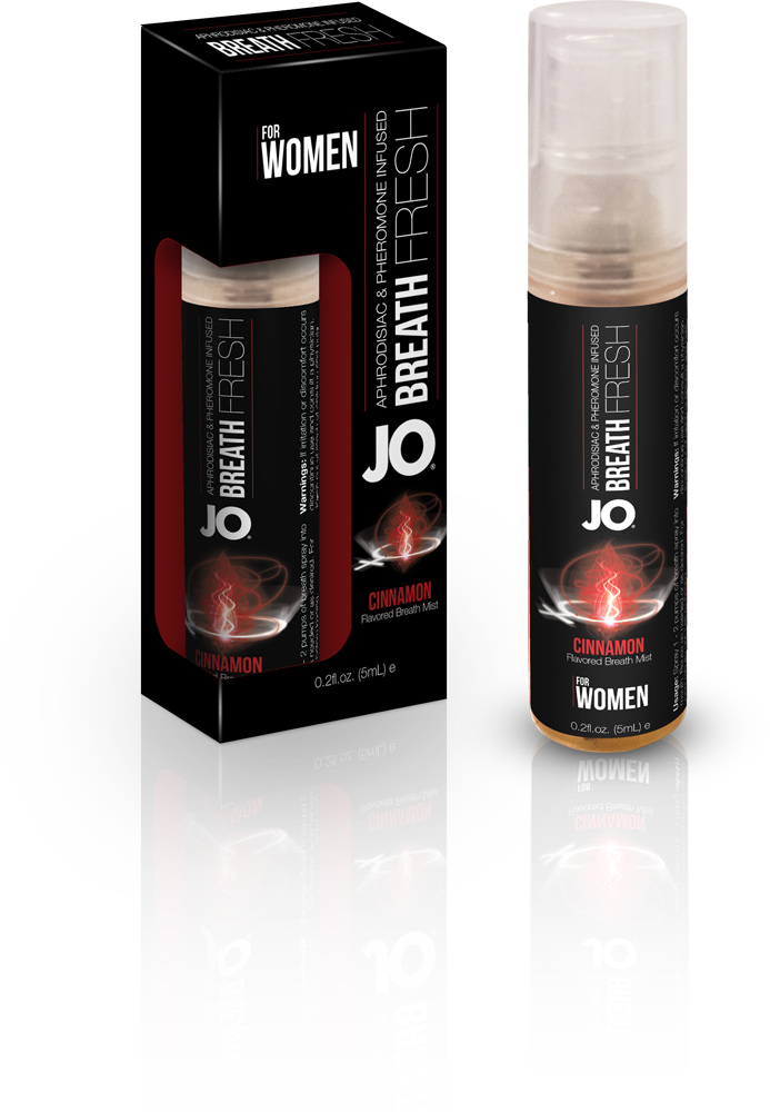 Boost confidence and sex appeal with every breath you take. JO BREATH Fresh Mist uses natural aphrodisiacs & pheromones to enhance your attractiveness while leaving you feeling fresh and clean. With just a few sprays of invigorating Peppermint, Cinnamon or Cinnamint flavored JO BREATH Fresh, you?ll be ready for anything. In separate formulas FOR MEN and FOR WOMEN.