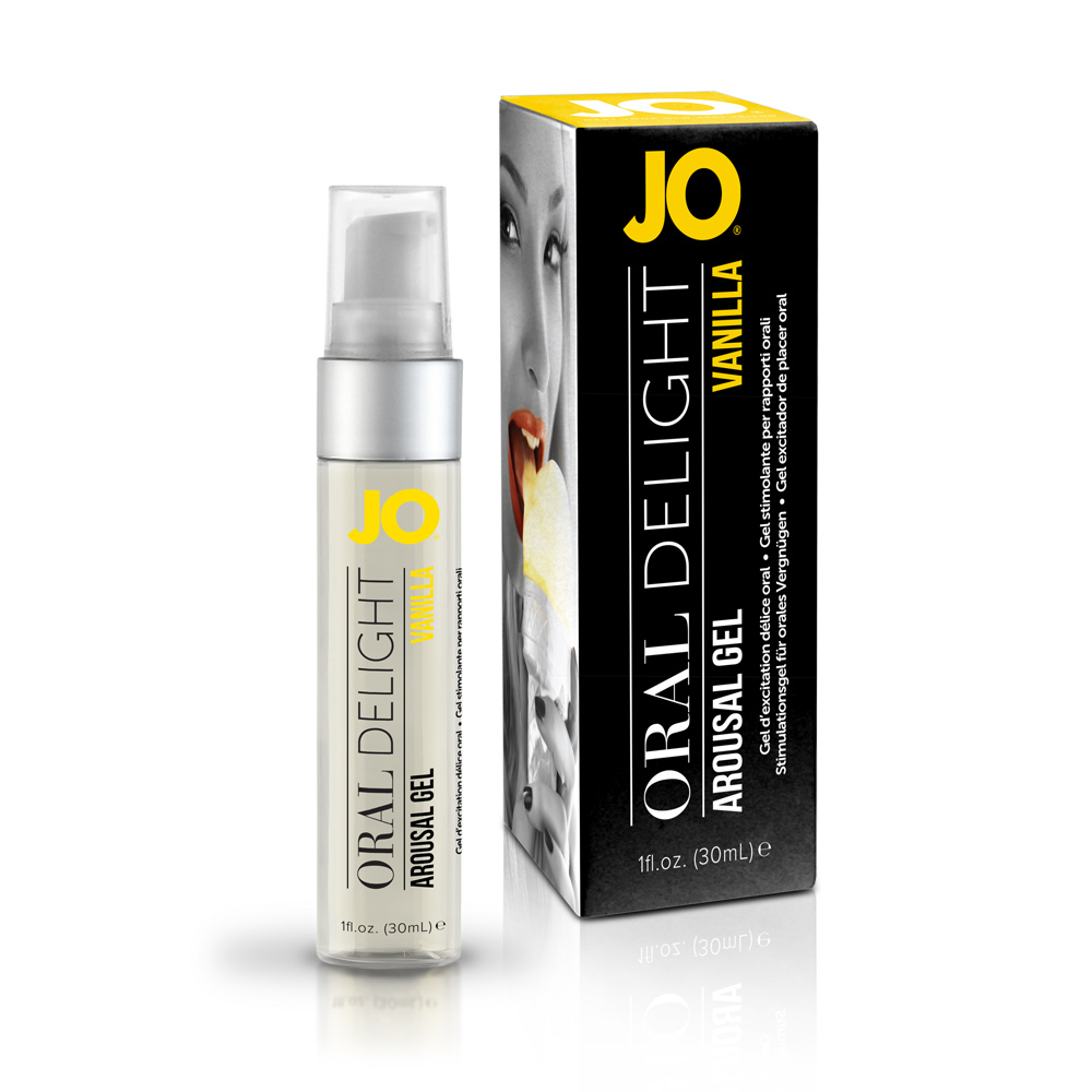Jo Oral Delight Vanilla Thrill Add a playful twist to giving and receiving with JO ORAL Delight. This gel offers a cooling sensation to enhance oral pleasure and delivers four delicious lip-smacking flavors. Enhances oral pleasure for both Cooling sensation invigorates and refreshes 4 delicious flavors: Strawberry Sensation, Cherry Burst, Vanilla Thrill and Peppermint Pleasure