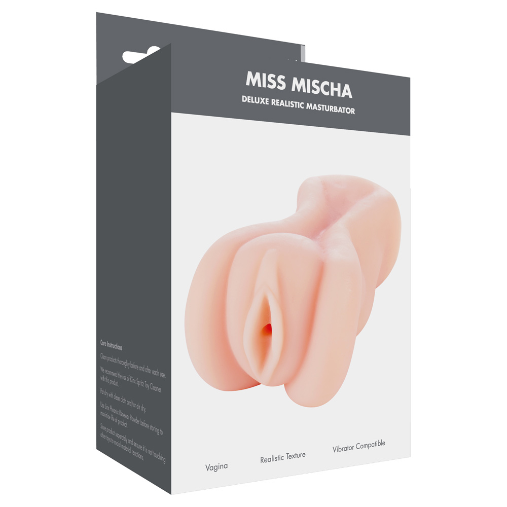 The Miss Mischa Deluxe realistic masturbator is packed with texture on the inside and features a realistic stretchy opening for a lifelike feel.