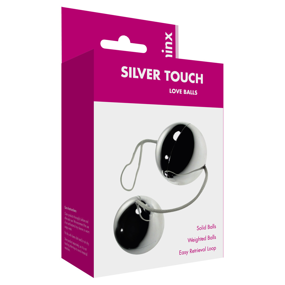 Silver Touch Love Balls. These Silver balls have internal beads, which provide constant movement. When you move, they move! Ideal for those who have never experienced a ben-wa ball before, these are small and discreet. The Orgasmus balls have a handy string attachment for easy removal and will soon have you converted to the way of the ben-wa.