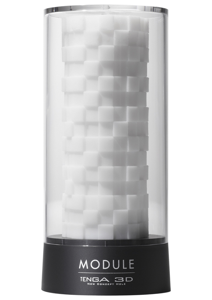 Module Tenga 3D. Randomly elevated blocks adorn the walls of this object. The protruding blocks rub along you for a firm sensation, while the receded blocks cling onto you accentuating the tone. The blocks cascade in a contrasting flurry of stimulation providing a strong sensation with a solid finish.