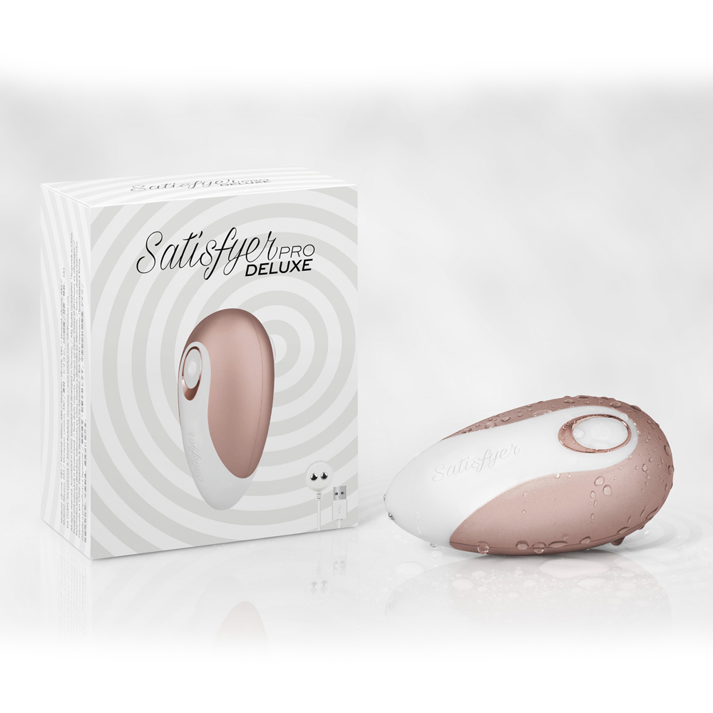 The Satisfyer Pro Deluxe clitoral vibrator uses pressure waves to stimulate, delivering incredible contact-free pleasure. This toy has 11 programs and a whisper-quiet mode for discreet pleasure that’s always varied.