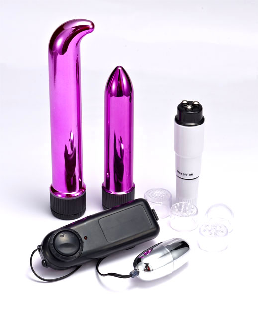 Kit Includes- Erotic Rocket. Requires 1 AA Battery, 7' G-Spot Vibe – Requires 2 AA batteries, 5' Shimmer vibe – Requires 1 AA Battery, Vibrating silver bullet – Requires 2 AA Batteries.